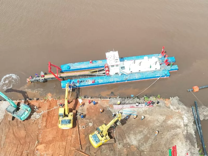 Sedimentin kerääntyminen nostaa jokien uomaa, mikä lisää dramaattisesti katastrofaalisten tulvien riskiä. Jokiruoppaaja-aluksemme poistavat tehokkaasti miljoonia kuutiometrejä lietettä ja palauttavat joen luonnollisen "poikkileikkausalueen". Tämä lisää virtauskapasiteettia monsuunikausien aikana ja suojaa alajuoksulla sijaitsevia yhteisöjä ja maatalousmaata.