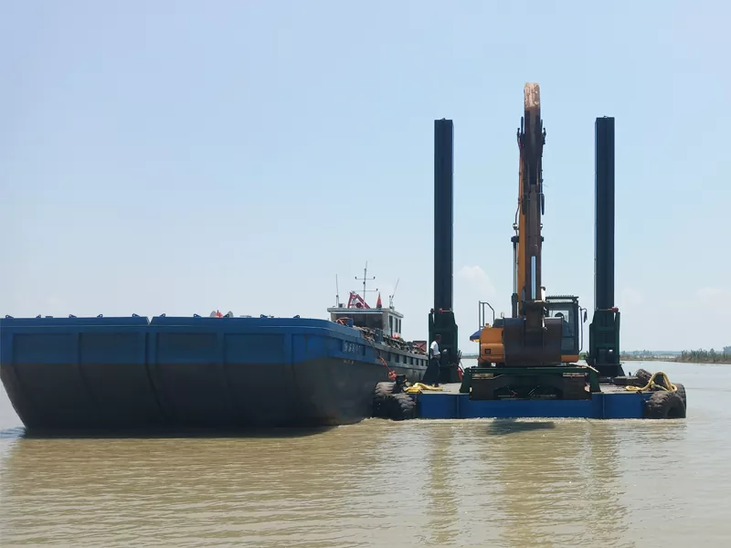 V: Käytämme modulaarista rakennetta, jonka avulla River Excavator Platform voidaan purkaa tavallisiksi kuljetuskonteiksi, mikä vähentää merkittävästi kansainvälisiä rahtikustannuksia ja yksinkertaistaa sisämaakuljetusta etäkohteisiin.