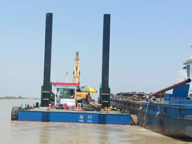 V: Vakaus riippuu alustan koosta ja kaivinkoneen painosta. Suunnittelemme alustamme säädettävillä spud-järjestelmillä varmistaaksemme tukevan jalansijan joenuomassa vaihtelevissa syvyyksissä.